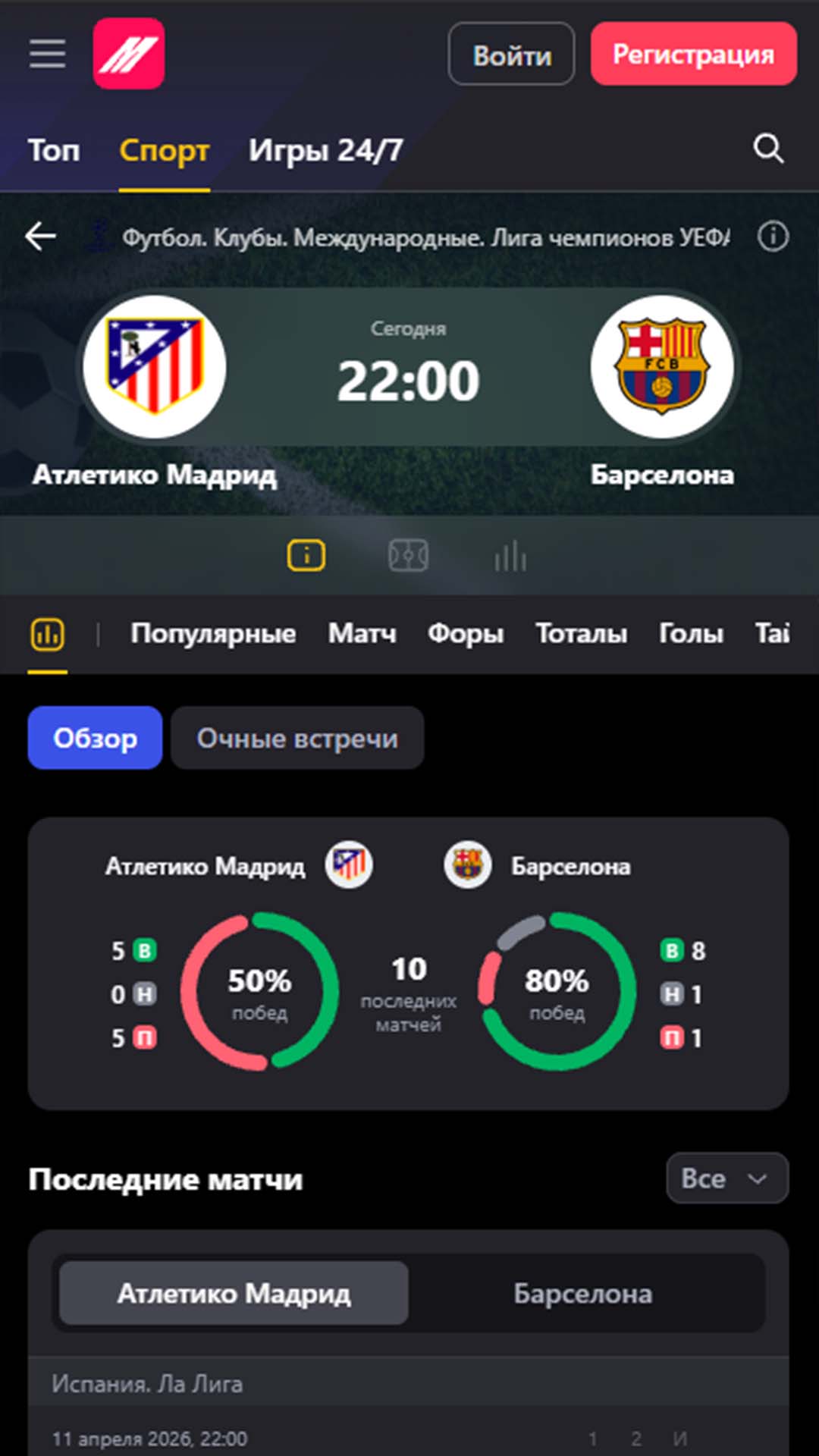 - H2H-статистика (личные встречи) помогает оценить историю противостояний между командами или участниками и точнее спрогнозировать исход сражения.