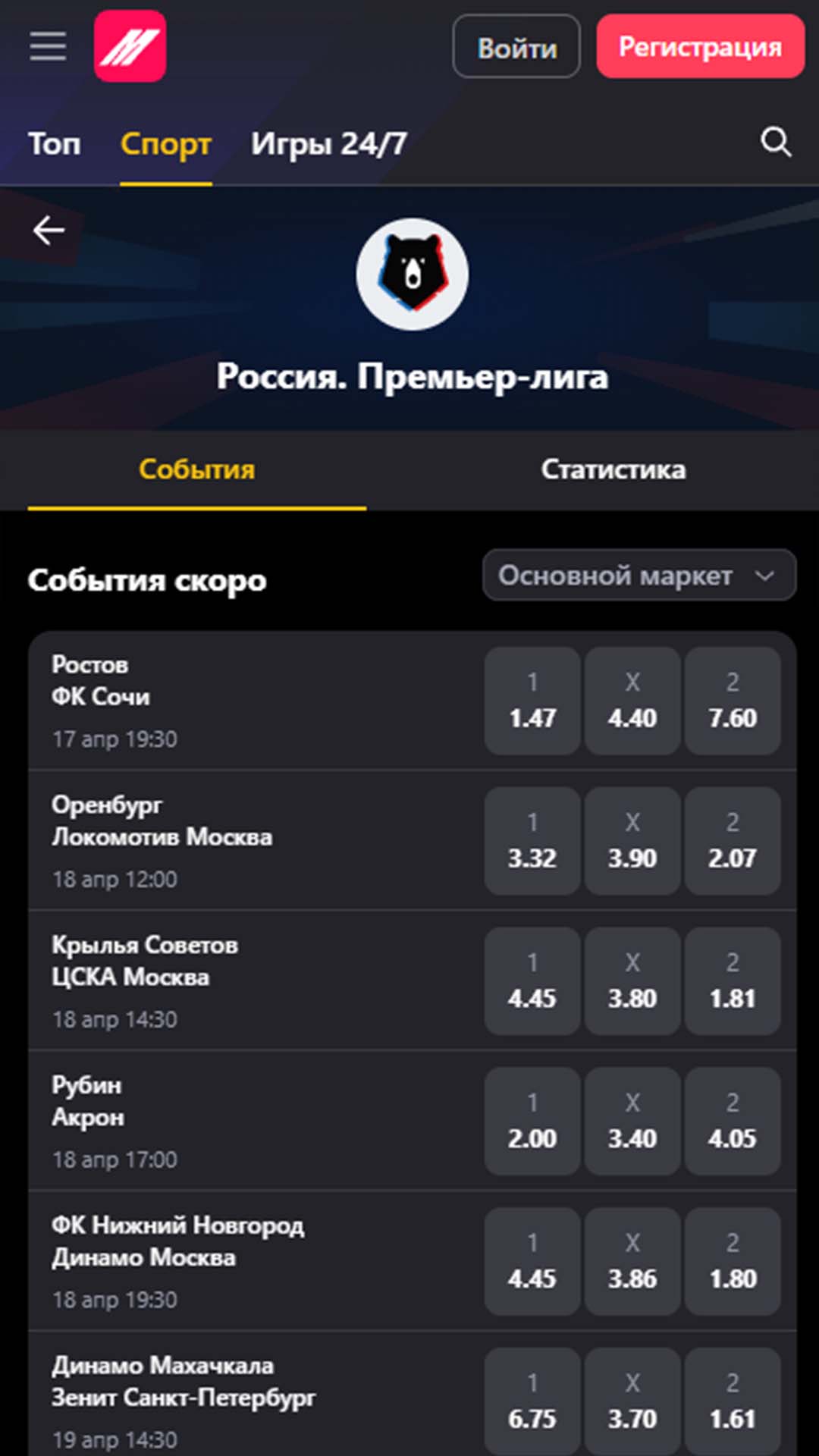 Одна из самых заметных новых функций Марафона — отдельная страница турнира. Здесь собраны все прематч и live-события конкретного соревнования без лишних отвлекающих элементов. Дополнительно добавлена статистика состязания, которая помогает лучше оценить расклад сил.
